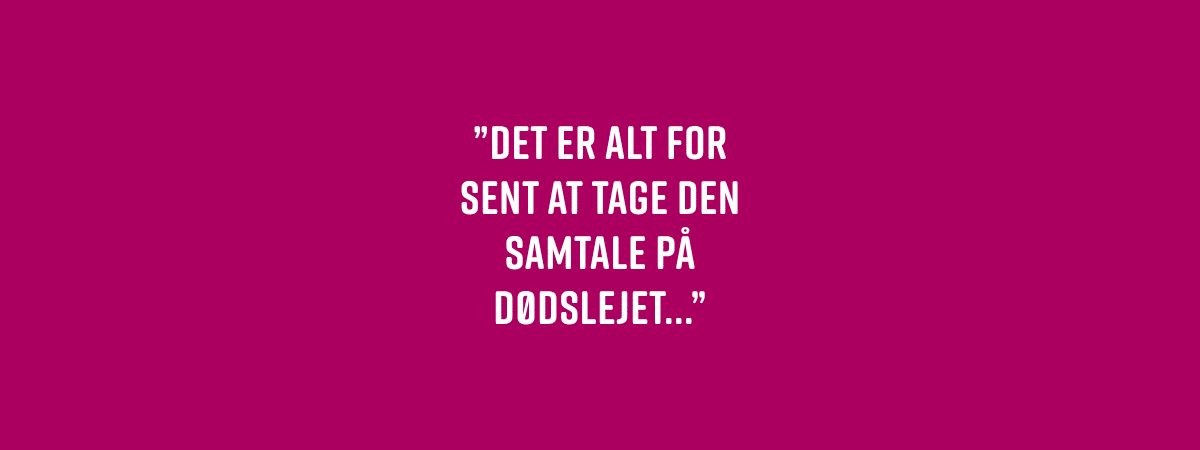 ”Det er alt for sent at tage den samtale på dødslejet, og det efterlader søskende med både skyld og usikkerhed og måske også vrede,” siger hun.